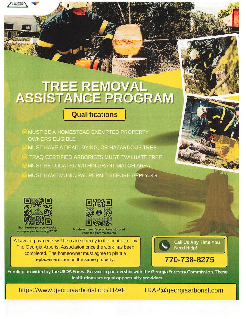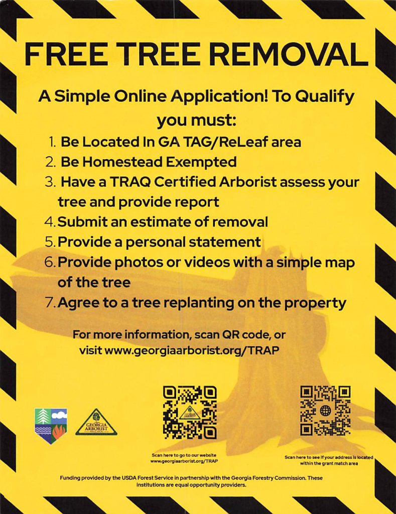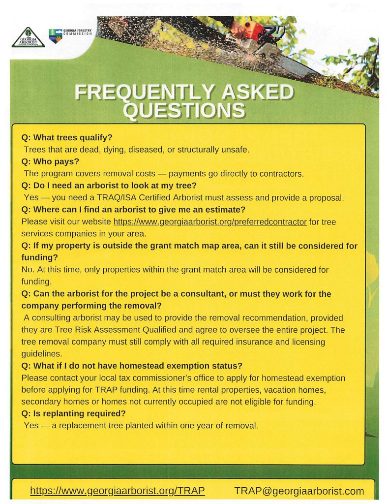 All award payments will be made directly to the contractor by the Georgia Arborist Association once the work is complete. For more information, call 770-738-8275 or email TRAP@georgiaarborist.com